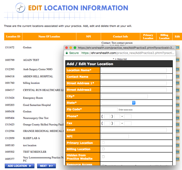 - To update an existing location, select “Edit”. If you wish to make changes to your primary location, you must submit a ticket to support