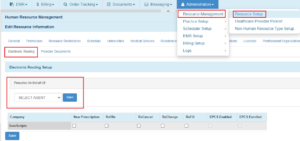 1. The Prescribing Provider must navigate to Resource Management > Resource Setup > User Name > Electronic Routing > Prescribing Agent.