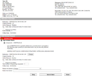 3. On the refill request page, you can select Save & Send to accept the refill and electronically send the prescription “as is” to be refilled. You can also Deny a refill request if it doesn’t meet with practice protocols. Deny will halt the refill request and allow the practice to address the reason.