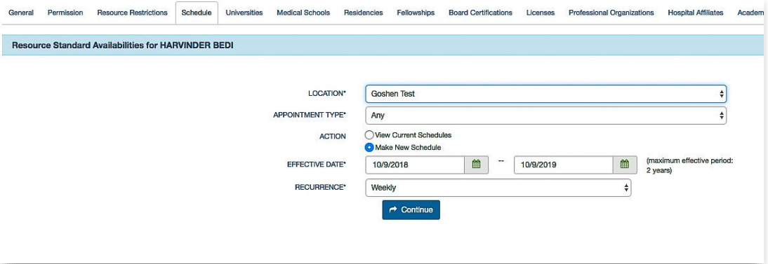 - Click ‘Make New Schedule’. Effective Date will default to one year – this can be extended if desired