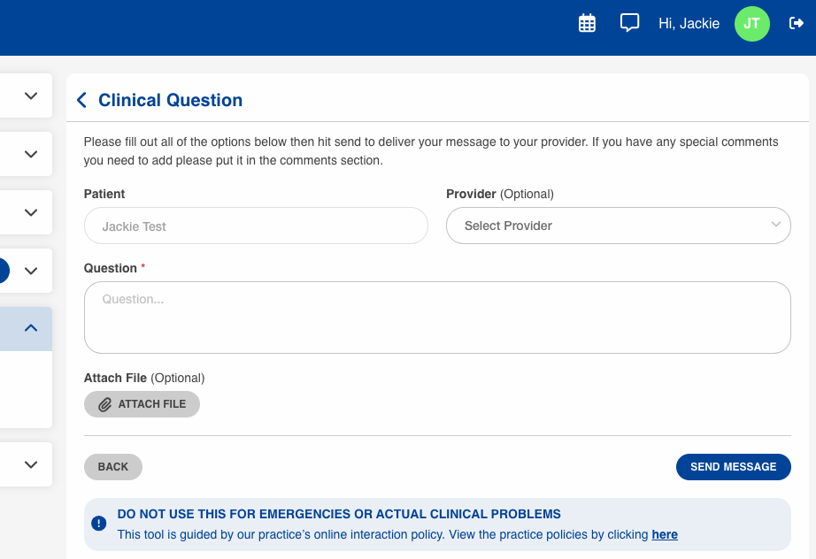 We also have to emphasize that the patient needs to select the provider’s name from the dropdown to send the message directly to a provider.