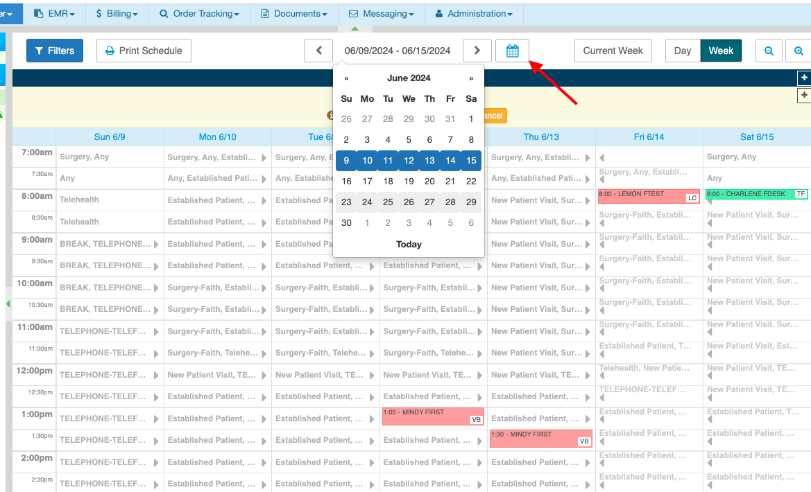 - Click on the Calendar Icon at the top and select a particular date for the new appointment schedule.