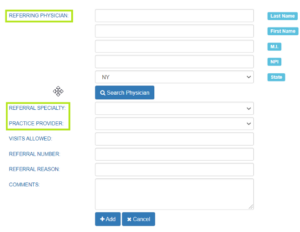 3. Click Add Referrals to add a specific referring physician’s name and/or specialty.