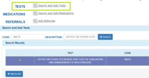 4. Add specific tests or CPT codes to the referral by searching for a code and adding to list.