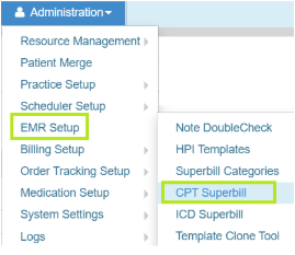 Once you have set up the outgoing referral panel, you can add it to the superbill for ease of selection in the EMR note by going to Administration > EMR Setup > CPT Superbill.