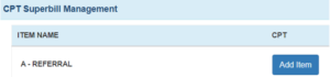 1. In the CPT Sperbill Management, go to the Referrals category and click Add Item.