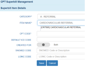 4. The new Referral will be added to the Referral category in the CPT Superbill.