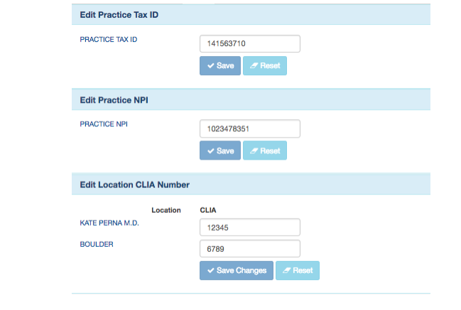 - Enter your Practice Tax ID and NPI, making sure to provide a unique CLIA # for each location