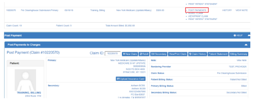 NOTE: Search/Find associated claim to be used for posting payments.