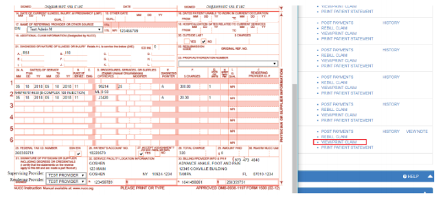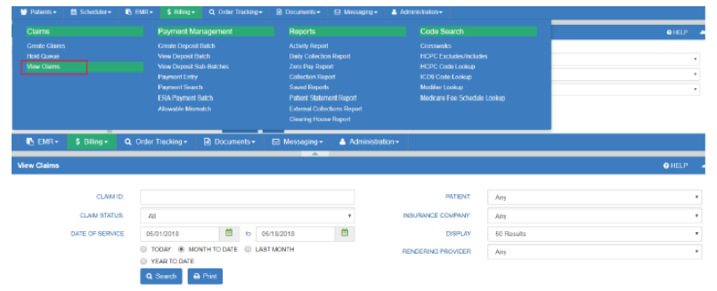 BILLING → CLAIMS → VIEW CLAIMS