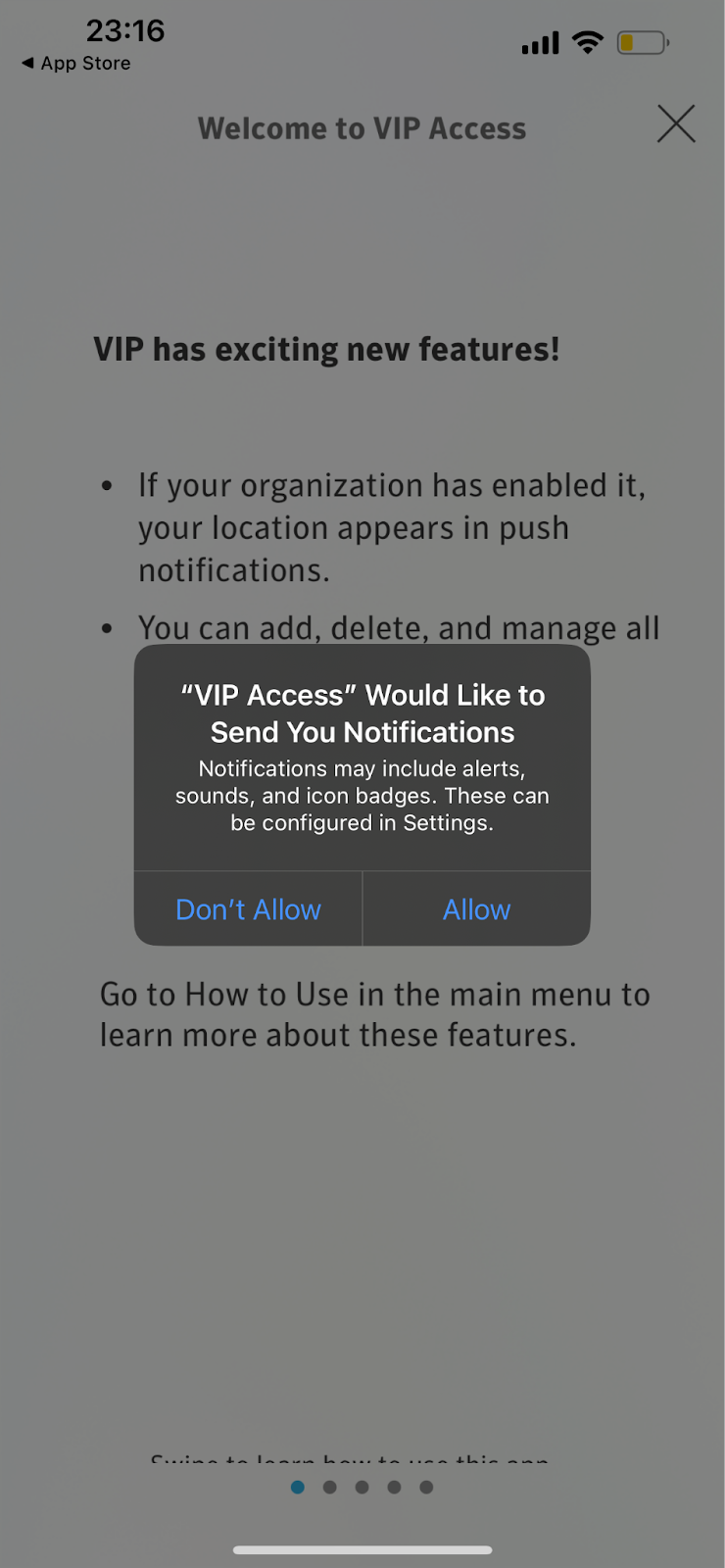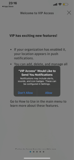 Step 2: When opening the VIP Access App, allow the app to send you notifications. Click Allow.