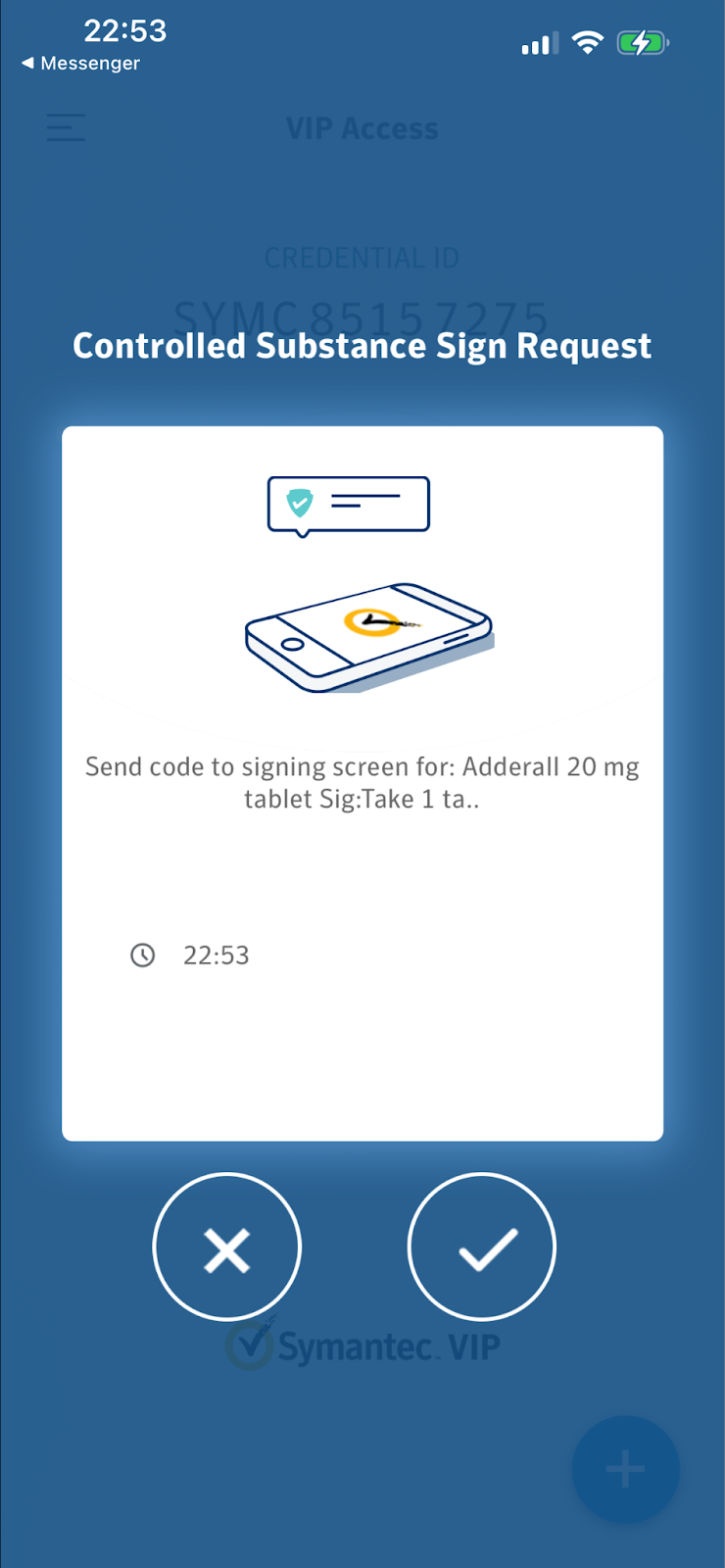 Step 7: Swipe right to approve and sign the Controlled Substance Sign Request. Click the X icon to deny the authorization.