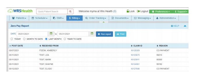- A zero pay report provides a list of line items in the post payment screen that were closed without any payment posted.